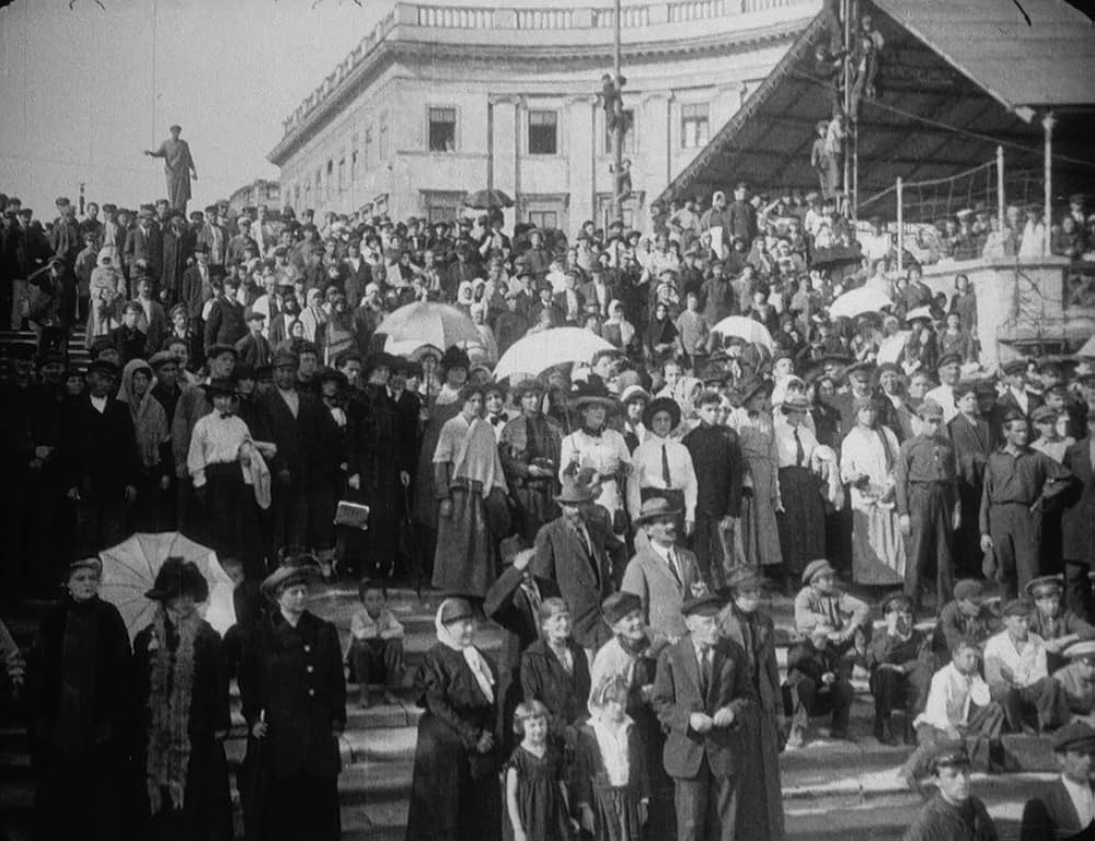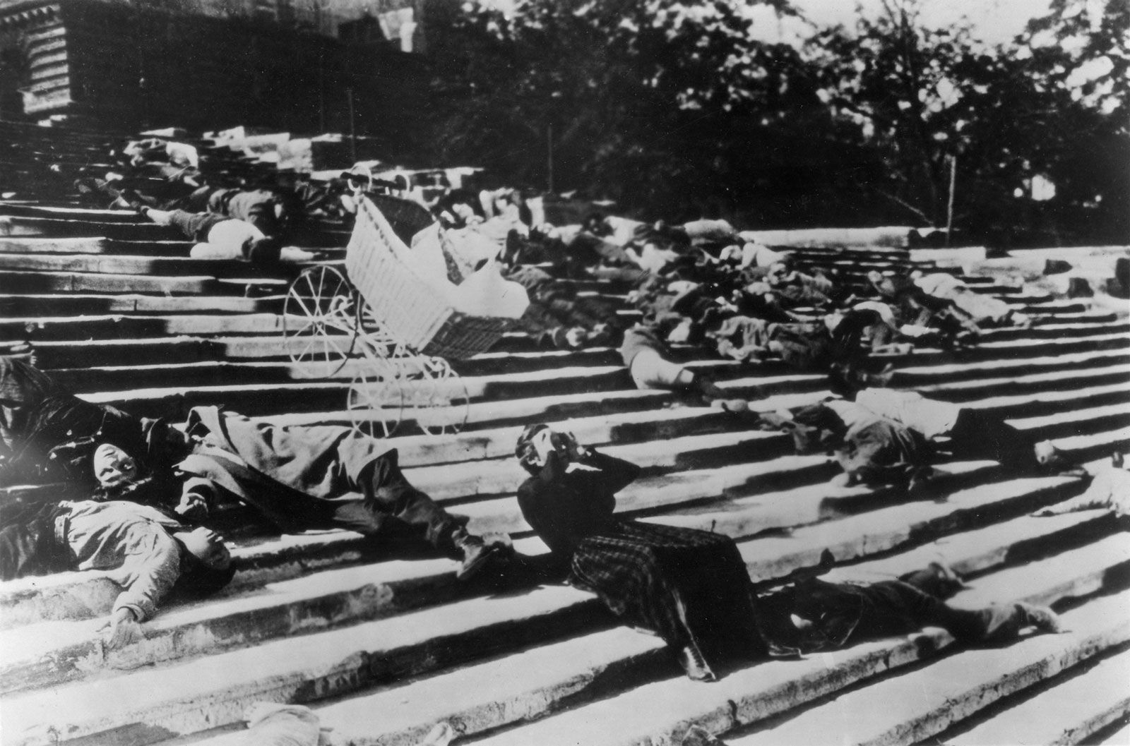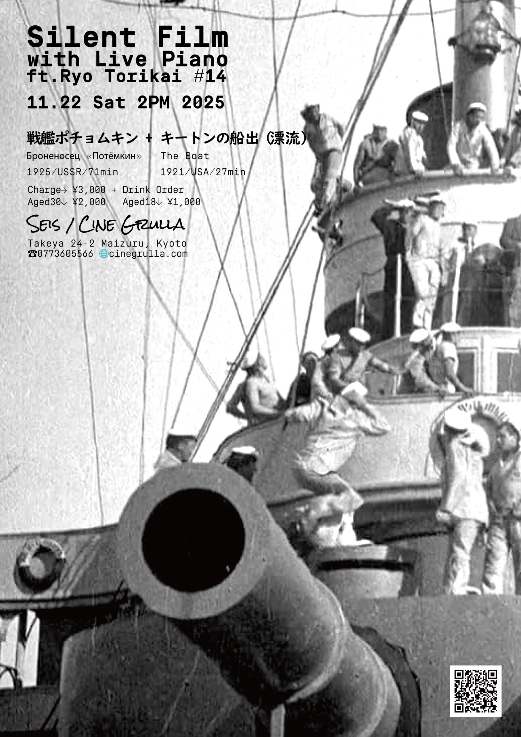 <Story>1905年夏。黒海沖の巡洋艦ポチョムキン号に乗船する水兵たちは、非人間的な命令を強いる上官に対して反乱を起こしオデーサの港へ寄港するが、やがて軍隊が押し寄せ大虐殺が繰り広げられる…。エイゼンシュテインが27才で撮った、彼の代表作にしてサイレント時代の最高傑作という呼び名の高い作品。オデーサの階段を乳母車が転げ落ちていくシーンは、のちにブライアン・デ・パルマ監督が自作『アンタッチャブル』でオマージュを捧げている。